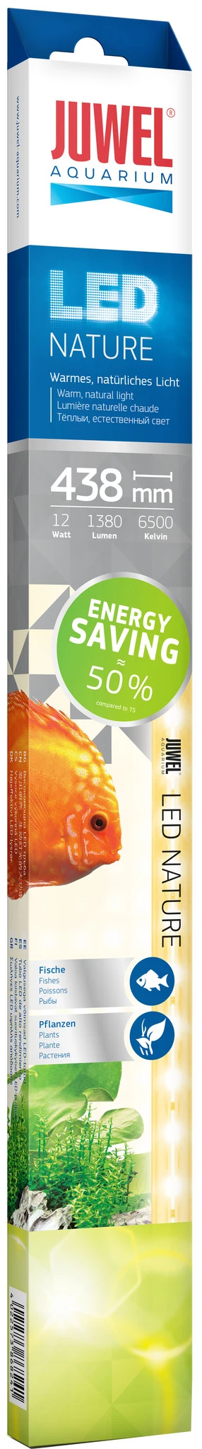 De energiezuinige LED Nature zorgt voor een warm en natuurlijk licht. Het speciale lichtspectrum van het lichtmedium bevordert de fotosynthese van de planten en benadrukt verder de groene kleuren in het aquarium. In combinatie met de LED Day is de LED Nature bijzonder geschikt het complete zonnespectrum af te beelden. Alleen geschikt voor MultiLux LED. Niet compatibel met T5-inzetlampen. Warm, natuurlijk licht, natuurlijke kleuren met 6500 Kelvin, bevordert de groei van hoge planten en ideaal in combinatie met LED Day.